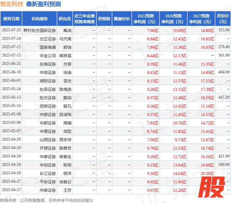 最新盈利预测明细如下:
